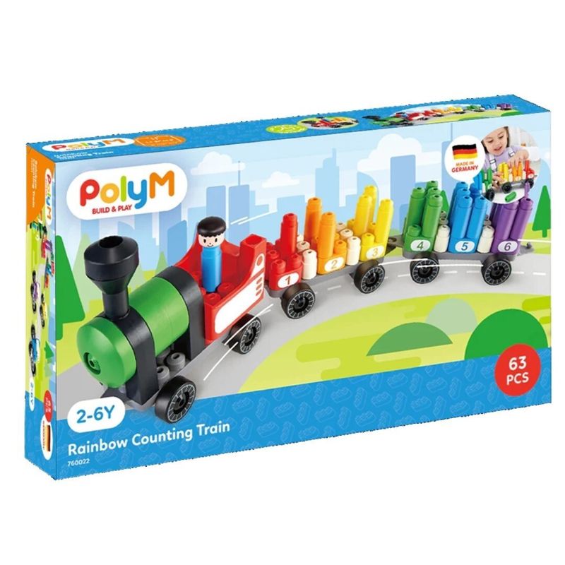 Da rienda suelta a tu imaginación y creatividad y crea una amplia gama de interesantes figuras, vehículos y estructuras temáticas de conteo y arcoíris utilizando bloques Poly M de fácil construcción. El kit de tren de conteo arcoíris incluye 63 ladrillos PolyM, instrucciones de construcción y un folleto.