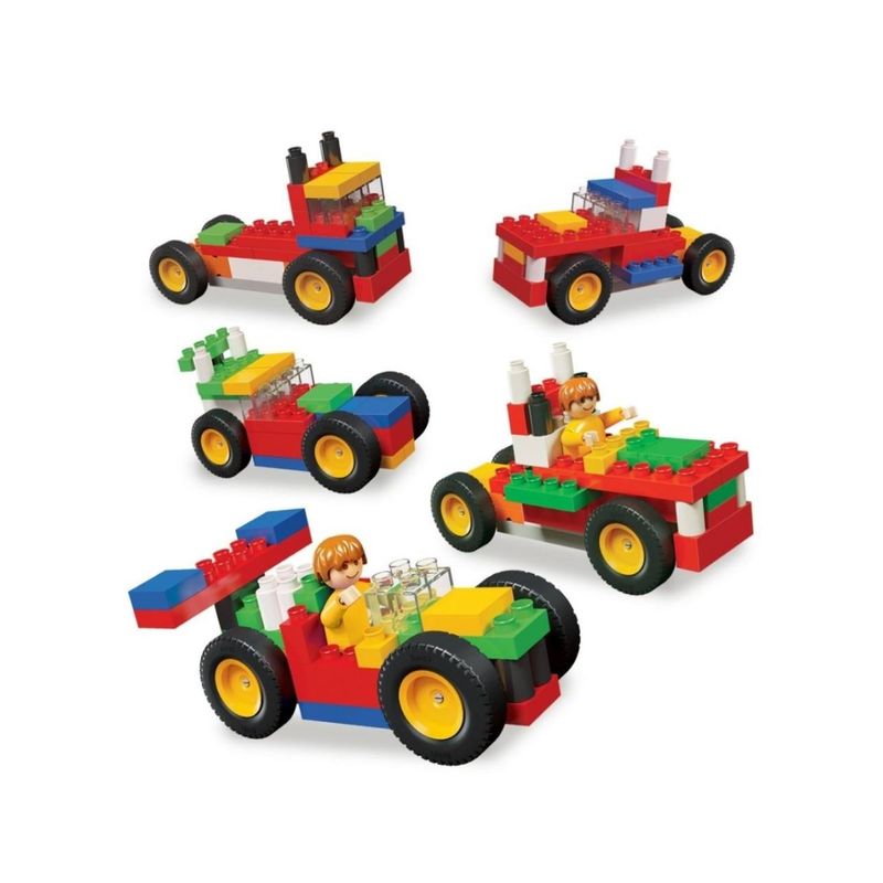 (50 piezas) ¡Con este producto podrás armar 5 espectaculares vehículos de a uno por vez: Camión tripulado, de carga, mini hot rod, el súper fórmula E y mucho más! Incluye:
