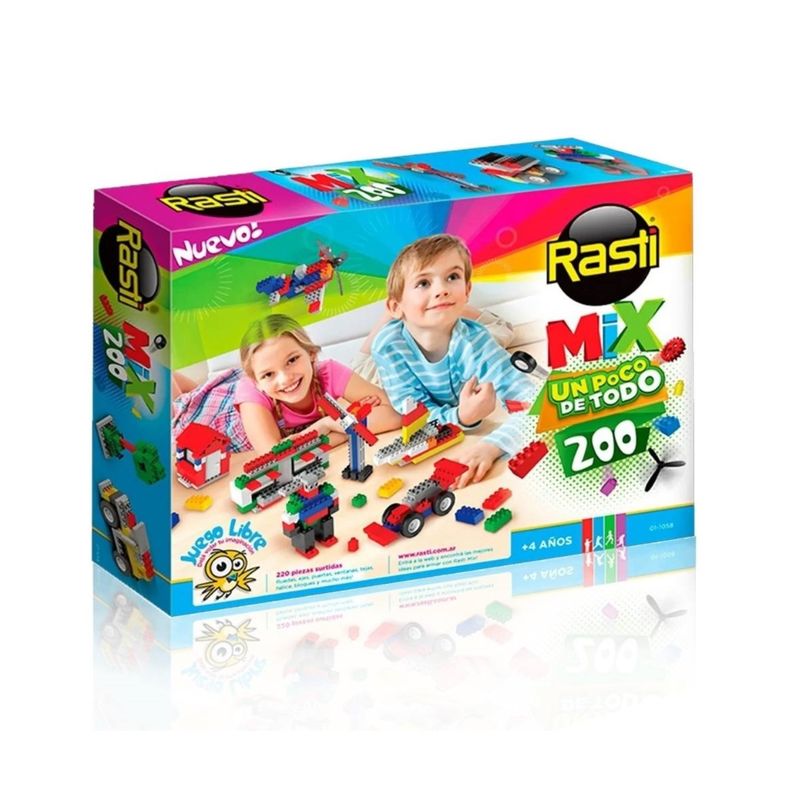RASTI MIX UN POCO DE TODO 200 PIEZAS - Incluye un Muñeco de Regalo - 200 Piezas surtidas - Dejá volar tu iamaginacion armá tu Casas, Autos, Aviones y todo lo que quieras - Estimula la Concentracion, Iniciativa y Creativida en el niño - Entrá a la web y encontrá las mejores ideas para armar con RASTI MIX - Recomendado para + 4 años
