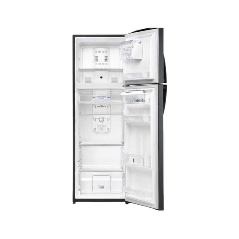 Con una capacidad de 300 litros, este refrigerador permite almacenar gran cantidad de alimentos, bebidas y productos frescos de manera ordenada. Incluye dispensador de agua para un acceso rápido y práctico, además de la función frío seco que ayuda a mantener los alimentos frescos por más tiempo. Su tecnología Total Fresh Flow asegura una distribución uniforme del aire, evitando puntos calientes y prolongando la frescura de los productos almacenados.