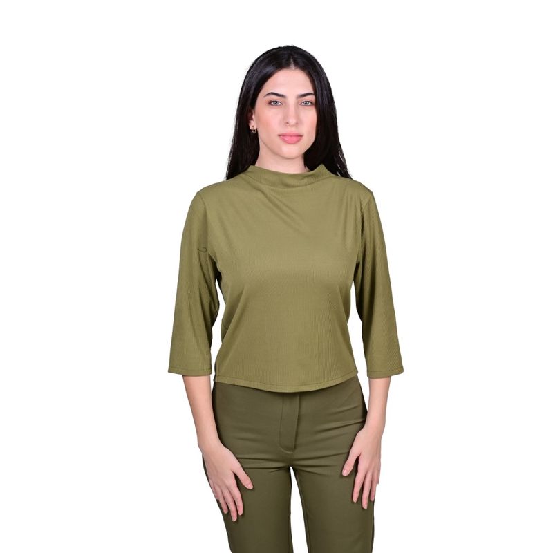Esta remera de manga 3/4 presenta un diseño acanalado que brinda textura y un acabado sofisticado, ideal para un look moderno y femenino. Su cuello alto tipo tortuga corto añade un toque de elegancia y protección ligera para días frescos. Las mangas 3/4 terminan justo por encima de la muñeca, permitiendo comodidad y versatilidad en diferentes estaciones. La silueta es ajustada al cuerpo, resaltando la figura sin sacrificar confort.