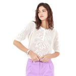 La Remera Blanco Estilo Boho Con Encaje de Fuera De Serie es la opción perfecta para quienes buscan un look relajado con toques de elegancia. Esta prenda cuenta con un diseño de cuello redondo y manga corta, ideal para un estilo fresco y cómodo. El detalle de encaje en la parte superior le da ese toque bohemio y delicado, mientras que el diseño jacquard ofrece una textura que eleva el diseño sencillo de la prenda.