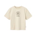 Esta remera de manga corta con cuello redondo presenta un diseño cuidado en cada detalle. En el frente, incluye un estampado circular con un árbol estilizado al centro, rodeado del texto “GROWING UP WITH THE RHYTHM OF NATURE”. Debajo del gráfico frontal se destacan las frases “QUEST FOR FREEDOM” y “POWER OF NATURE”, que aportan un mensaje inspirador.