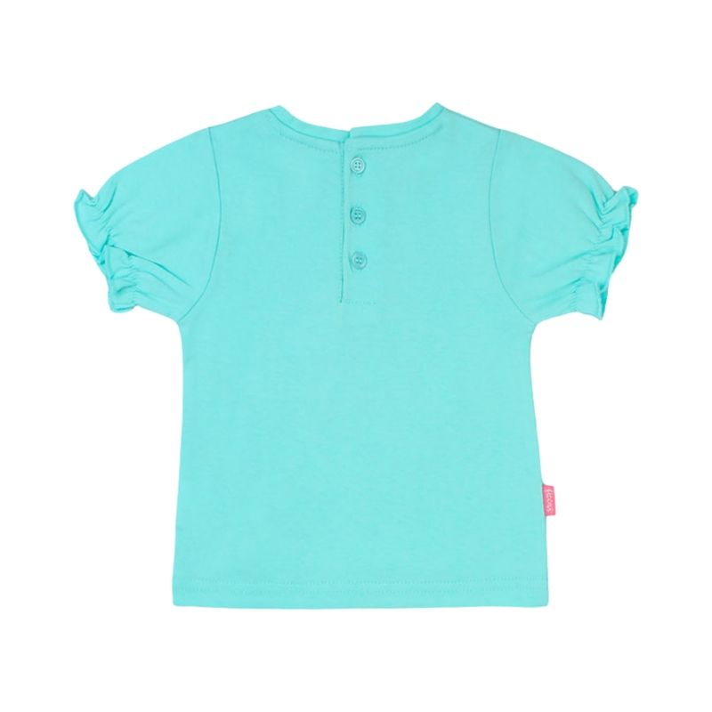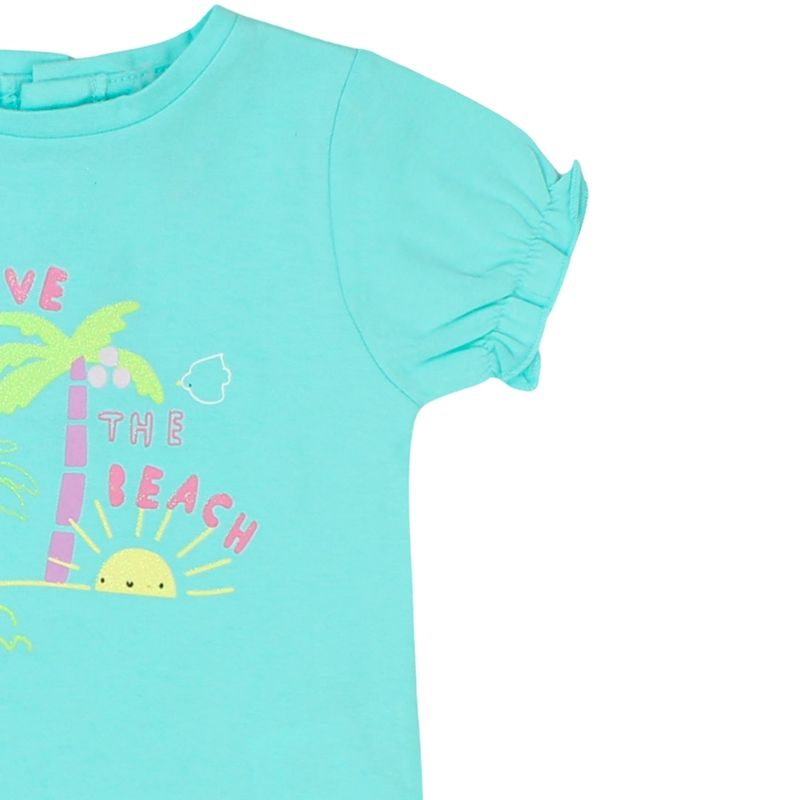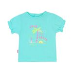 La Remera Holiday Manga Corta Turquesa de Ficcus combina diversión y estilo para niñas que buscan comodidad y frescura en su vestimenta diaria. Con cuello redondo y mangas cortas abullonadas con fruncido, esta prenda ofrece un toque delicado y moderno. El cierre trasero con tres botones facilita el uso y agrega un detalle práctico y estético. El estampado frontal de palmeras y sol acompañado del texto “LOVE THE BEACH” en varios tonos le da un aire veraniego y alegre, ideal para días de juego y actividades al aire libre.