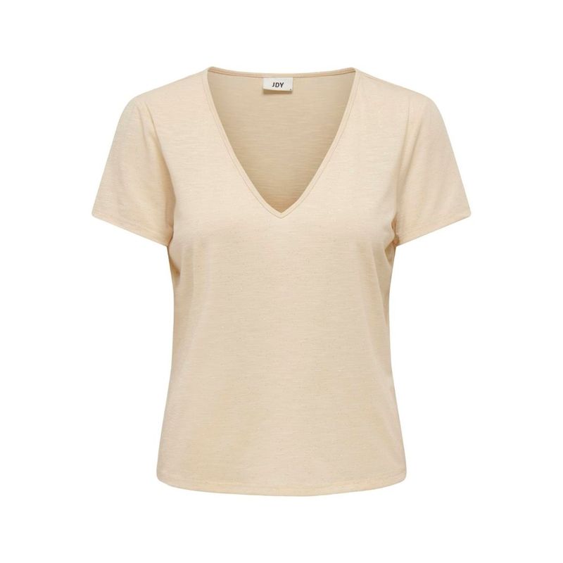 Esta camiseta para mujer de JDY está confeccionada con una mezcla de poliéster. El modelo tiene cuello en V y manga corta Detalles extra: Detalle de purpurina Manga corta Cuello en V Material: 97% Poliéster 3% Elastano Instrucciones de lavado: Lavar a máquina en programa delicado a 30 grados centígrados. No en la secadora.