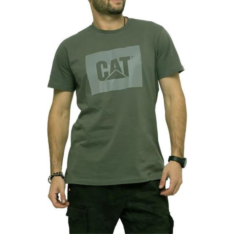 Remera M/C Verde Reflective Logo Box. Hombre Cat