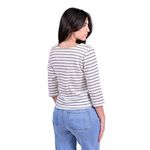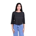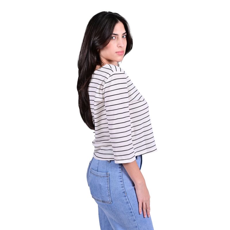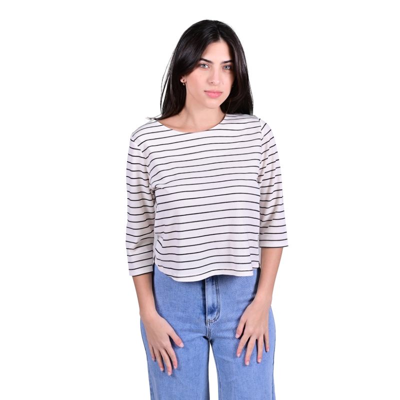 Remera de manga larga con rayas y textura para mujer Tiare, una prenda moderna y versátil. Confeccionada en tela suave y confortable, su diseño con textura añade un toque único al look. Perfecta para combinar con jeans, faldas o pantalones de vestir, ideal para el día a día, la oficina o salidas casuales. Su ajuste cómodo y estilizado la convierte en una opción imprescindible. Se recomienda lavado a mano para conservar la textura y los colores.