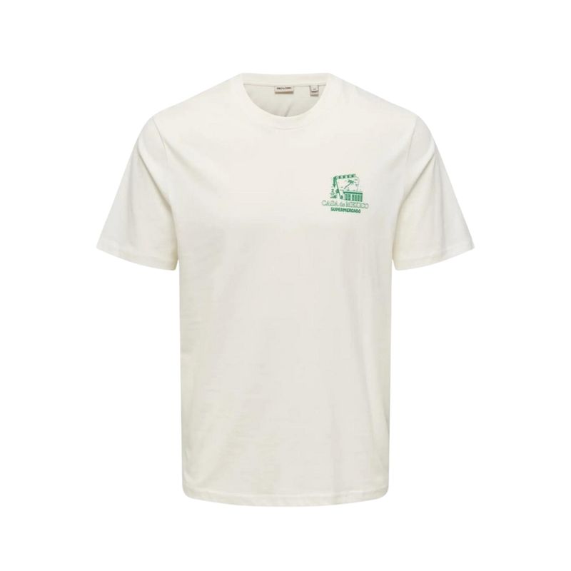 La remera manga corta Back Graphic Casa De Mexico de Only & Sons se distingue por su diseño moderno con combinación de colores marfil y verde, que aportan frescura y versatilidad. Su estilo urbano y contemporáneo la convierte en una prenda ideal para looks relajados y auténticos.