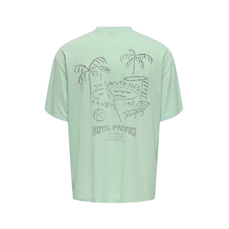 La remera manga corta Back Graphic Last Lazy Dayz de Only & Sons se caracteriza por su diseño moderno y relajado en tono verde menta. Su corte oversize fit proporciona un estilo amplio y cómodo, ideal para quienes buscan un look casual, fresco y urbano.