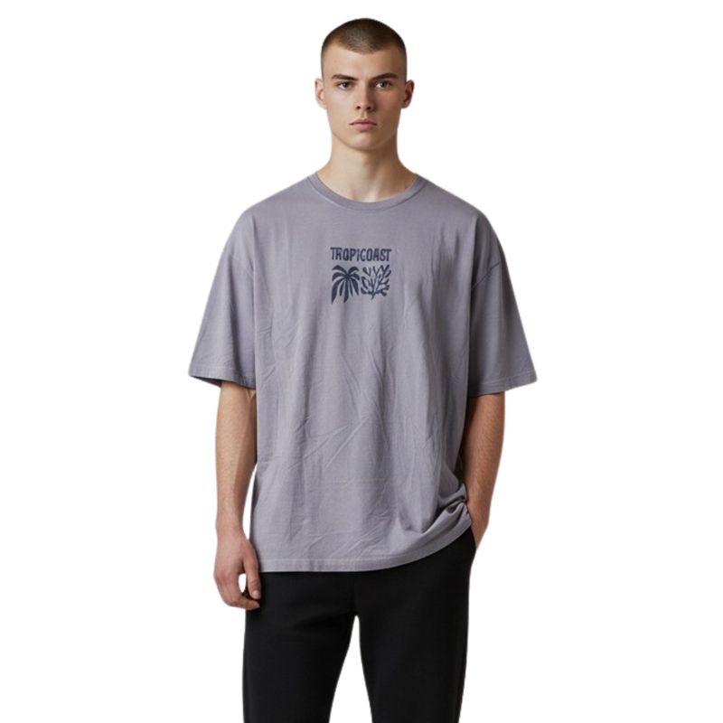 Cuenta con cuello redondo, estampado tropical en la espalda y un detalle de texto pequeño en el pecho que le da un toque distintivo. Su color lila aporta frescura y versatilidad, permitiendo combinarla con diversas prendas para lograr un outfit equilibrado y contemporáneo.