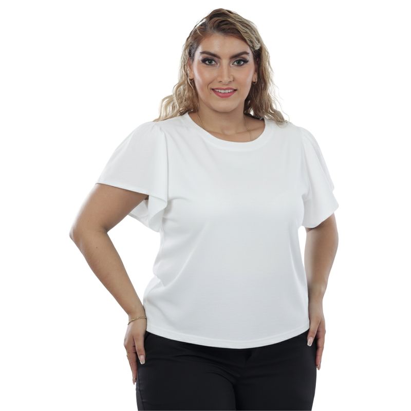 La Remera Manga Corta Blanco Con Manga Abullonada de Susan Miller combina estilo femenino y comodidad con un diseño moderno y versátil. Su corte holgado y cuello redondo permiten libertad de movimiento y frescura durante todo el día. Las mangas cortas abullonadas con volantes aportan un detalle elegante y sofisticado, mientras que el cuerpo liso de la remera genera un contraste visual que resalta la textura de las mangas.