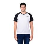 Diseño raglán moderno con contraste de colores blanco y azul marino.