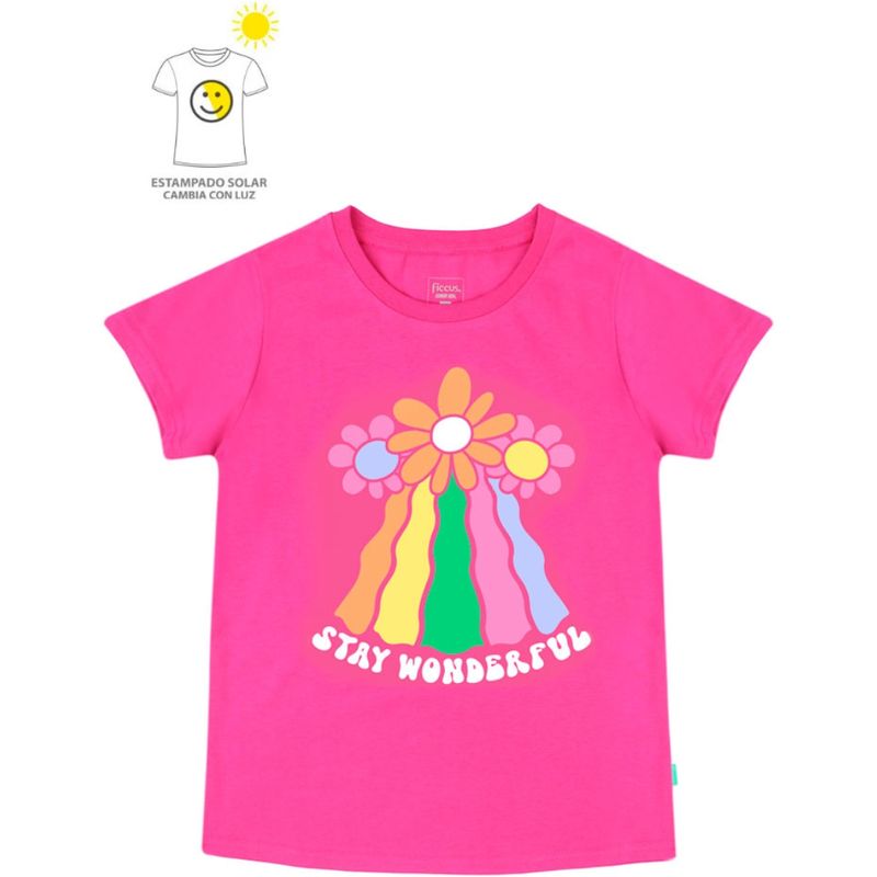 Remera Manga Corta Cambia De Color Power Light Fucsia Niña Ficcus