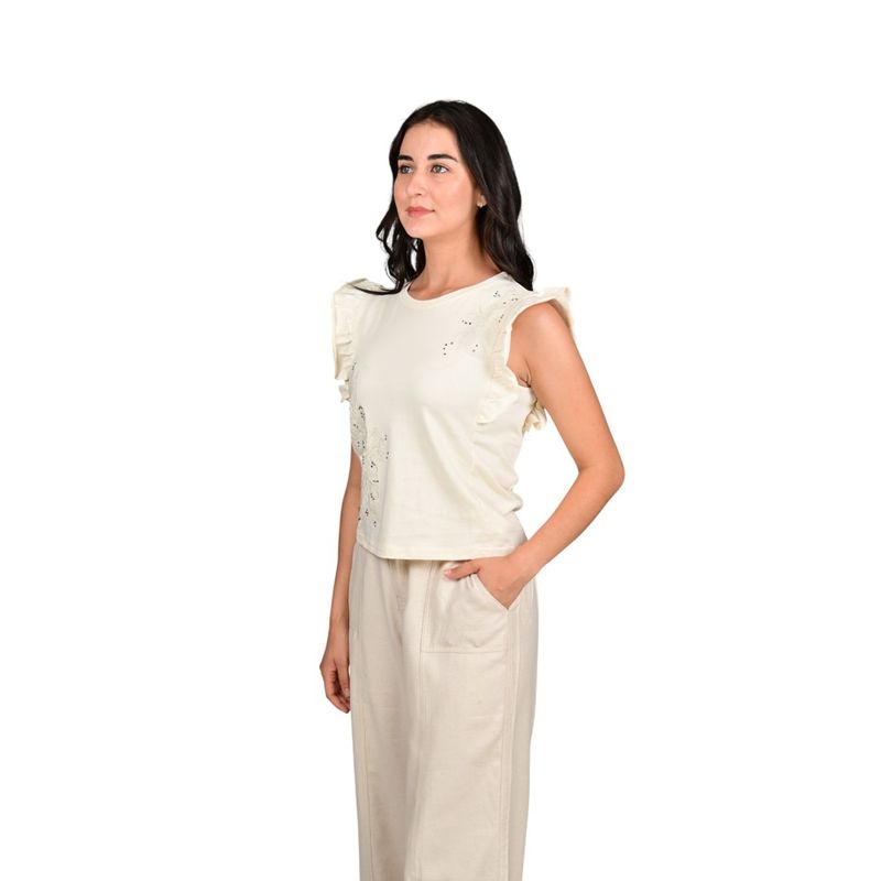 Esta remera manga corta combina simplicidad y elegancia gracias a su bordado a tono que aporta un detalle delicado y sofisticado. Su diseño versátil permite adaptarse a distintos estilos, desde un look casual para el día a día hasta combinaciones más cuidadas para ocasiones especiales.
