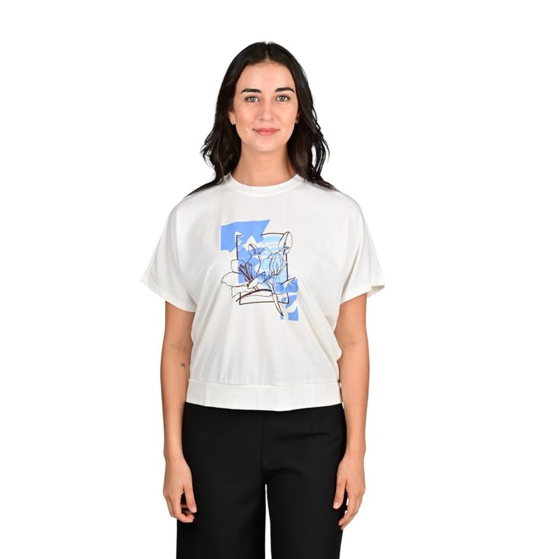 Esta remera manga corta combina suavidad y frescura gracias a su estampado floral en tonos celeste que aporta un detalle femenino y delicado. Su diseño versátil permite adaptarse a distintos estilos, desde un look casual para el día a día hasta combinaciones más cuidadas para salidas informales.