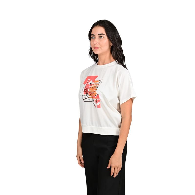 Se combina perfectamente con pantalones, faldas o shorts para un look equilibrado y cómodo. Para un estilo relajado, se sugiere el uso de champion. También se puede complementar con accesorios discretos que resalten el estampado floral.