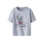 Ofrecé a tu niña esta remera manga corta en color azul claro de Nameit, con un delicado estampado de mariposa que aporta un toque dulce y moderno. Perfecta para un look casual y cómodo, esta prenda combina estilo y funcionalidad para el día a día.