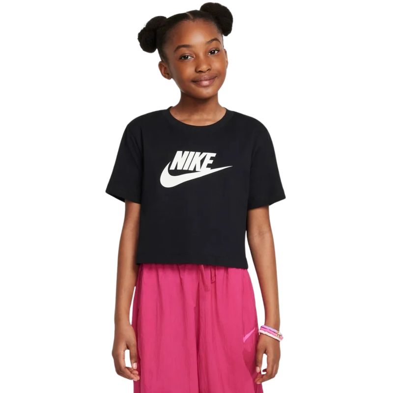 Esta remera Nike para niña combina estilo y comodidad con un diseño ligeramente cropped, ideal para un look moderno y fresco. Confeccionada en un tejido duradero y resistente de algodón suave, ofrece una sensación transpirable y confortable, perfecta para acompañar a las niñas durante todo el día.
