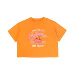 La Remera Manga Corta Day To Day de Ficcus está diseñada para niñas que buscan estilo y comodidad en su día a día. Su color naranja vibrante aporta alegría y frescura, mientras que el estampado frontal de temática frutal incluye dos cerezas acompañadas de los textos “SWEET AS LIFE Delicious Cherries” y “KEEP HEALTHY” en tonos blanco y rosa, transmitiendo un mensaje divertido y positivo. Las mangas cortas y el corte cómodo hacen que esta prenda sea perfecta para actividades urbanas y recreativas.