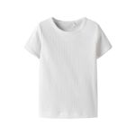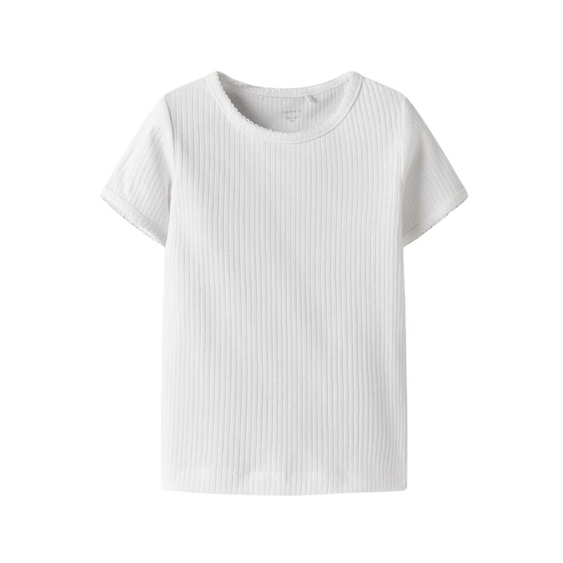 Renová el guardarropa de tu niña con esta remera manga corta en color blanco de Nameit, diseñada para combinar estilo y comodidad. Su corte slim fit ofrece un ajuste moderno y favorecedor, mientras que el tejido tipo jersey, ligero y elástico, brinda suavidad y libertad de movimiento, ideal para el día a día y ocasiones especiales.