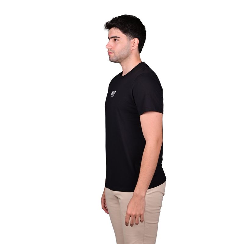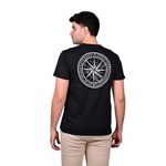 En la parte frontal, la remera presenta un estampado pequeño centrado en el pecho, que añade un toque sutil y elegante. La parte posterior destaca por un estampado grande de una rosa de los vientos, creando un efecto visual llamativo y moderno, ideal para quienes desean una prenda casual con un diseño diferenciado. Su cuello redondo clásico asegura un acabado limpio y atemporal, adaptable a distintas combinaciones de vestimenta.