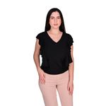 El corte en A y los volantes en cascada permiten que la prenda se adapte cómodamente a distintos tipos de cuerpo. Esta remera proporciona un look femenino, elegante y con un ligero toque romántico, ideal tanto para el día a día como para ocasiones semiformal.