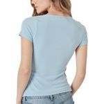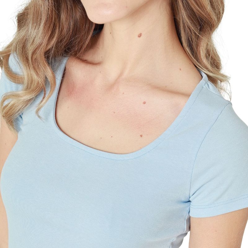 La Remera Básica Manga Corta Escote Cuadrado de la marca Fuera De Serie es una prenda versátil y fresca, pensada para acompañar a la mujer en sus actividades diarias. Su diseño sencillo se destaca por el escote cuadrado, que aporta un toque moderno y femenino, y las mangas cortas, ideales para climas cálidos. El color celeste bebé ofrece un aire suave y delicado que combina fácilmente con distintas prendas y estilos.