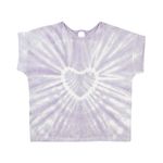 Diseño tie-dye degradé lila y blanco con corazón central que destaca de manera delicada y moderna.