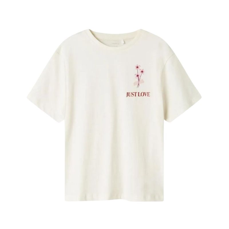 InfantilRopa de niñasRemerasRemera Manga Corta Estampada Just Love Marfil Niña Nameit