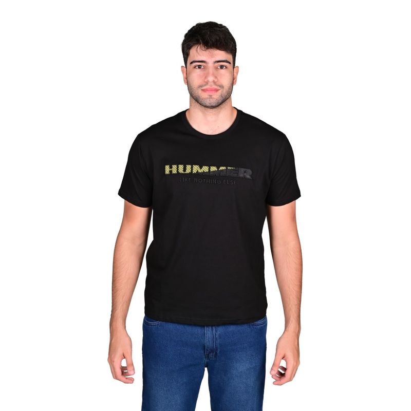 Esta remera manga corta para hombre de Hummer destaca por su diseño moderno y llamativo. El color negro profundo sirve como base perfecta para el estampado frontal que marca la diferencia. En el pecho, se encuentra el logo "HUMMER" en letras grandes con un efecto rayado que combina tonos amarillo y negro, brindando un detalle visual único y dinámico. Justo debajo, la frase "LIKE NOTHING ELSE" en un tono dorado apagado aporta un toque de sofisticación y refuerza el carácter exclusivo de la prenda. El cuello es redondo, clásico y cómodo, y el corte regular asegura un ajuste equilibrado para diferentes tipos de cuerpo.
