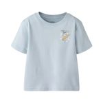 La Remera Manga Corta Estampado Tiburón Celeste Claro Niño Name It es una prenda fresca y divertida que combina estilo casual con un diseño lleno de personalidad. Presenta un estampado pequeño en el frente con ilustraciones de un tiburón, una tabla y un texto, mientras que en la parte posterior sorprende con el mismo diseño en un formato más grande, dándole un toque único y moderno. Su corte regular garantiza comodidad y libertad de movimiento, ideal para acompañar a los niños en todas sus actividades.