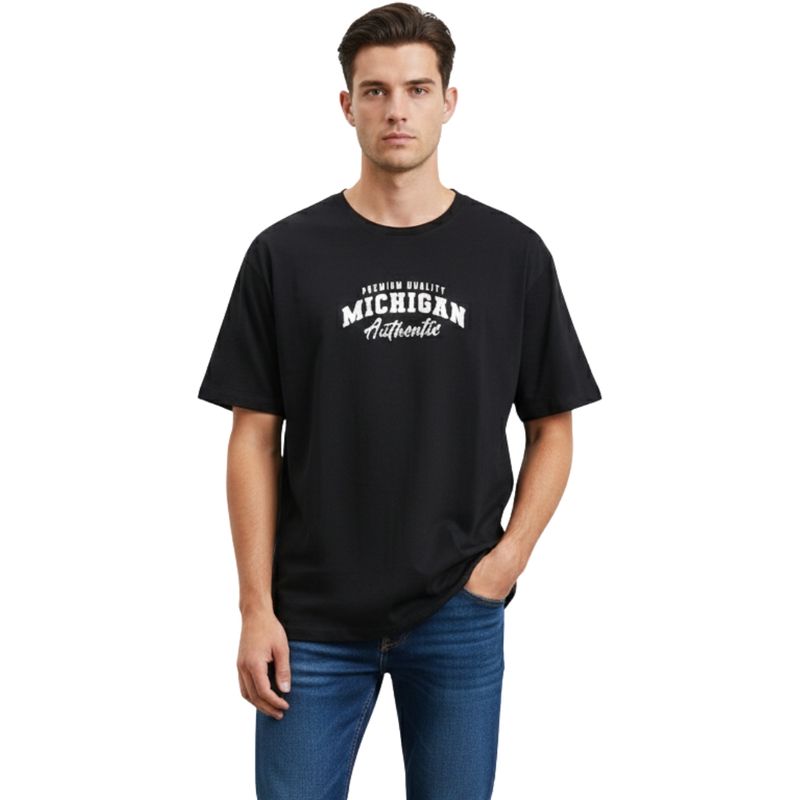 Estampado frontal “Michigan Ov” en negro que da un toque moderno y urbano.