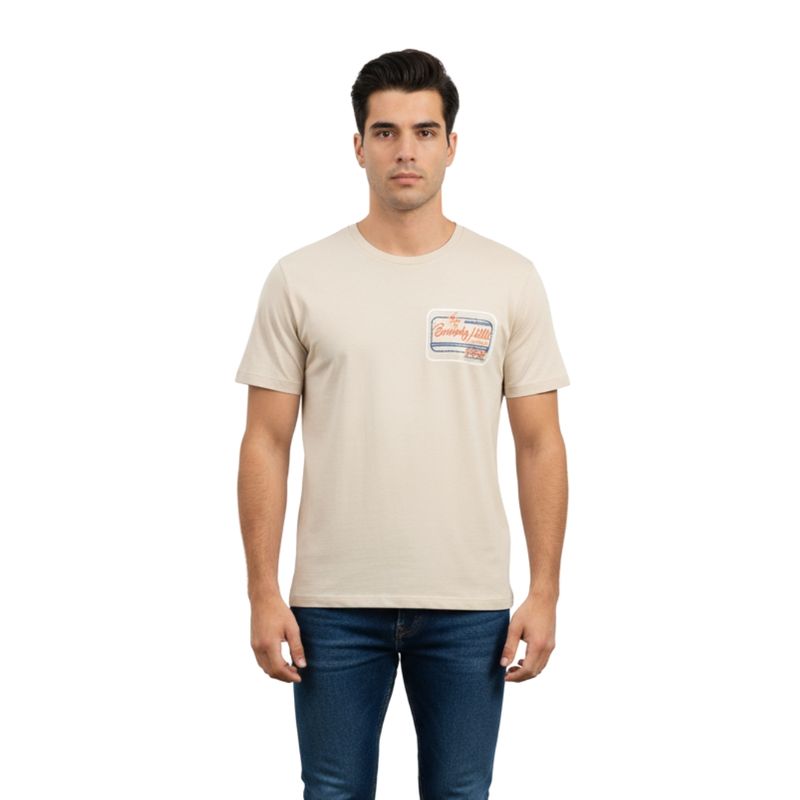 La Remera Manga Corta Graphic Classic Beige Hombre Beverly combina un diseño sobrio con detalles gráficos que destacan la identidad de la marca. Presenta un pequeño estampado del logo en el bolsillo falso del pecho y un gráfico rectangular más grande con el logo en la espalda, aportando un toque moderno y distintivo. Su corte clásico y cuello redondo aseguran comodidad y un calce relajado, ideal para el uso diario.