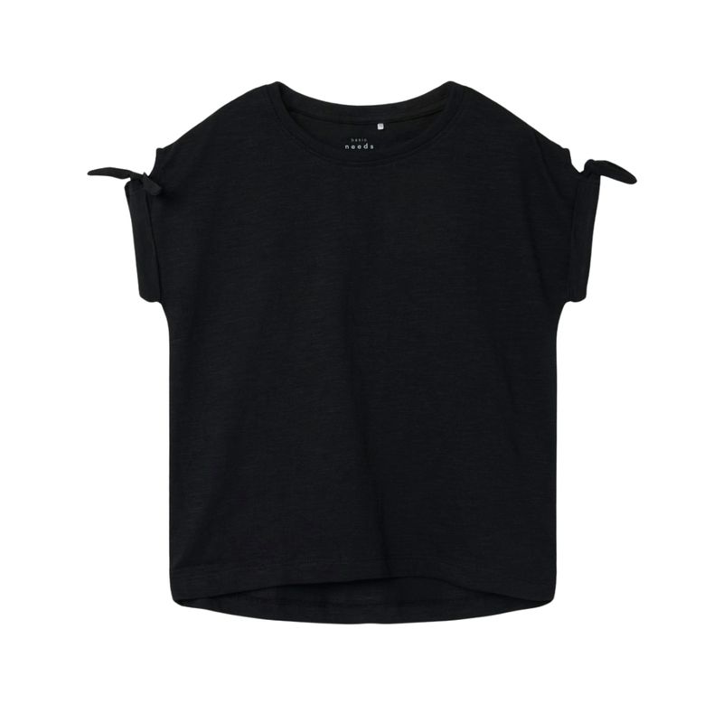 La remera manga corta con lazo negra de Nameit es una opción práctica, elegante y cómoda para el día a día de las niñas. Una prenda que combina funcionalidad con estilo para acompañarlas en todas sus actividades.