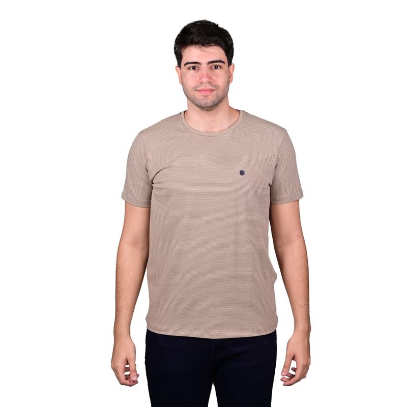 Remera de manga corta para hombre con corte clásico, diseñada para ofrecer comodidad y estilo casual. Presenta un cuello redondo liso que aporta simplicidad y elegancia. La tela cuenta con una textura acanalada con líneas horizontales, brindando un detalle visual moderno y distintivo que resalta la prenda sin sobrecargarla.