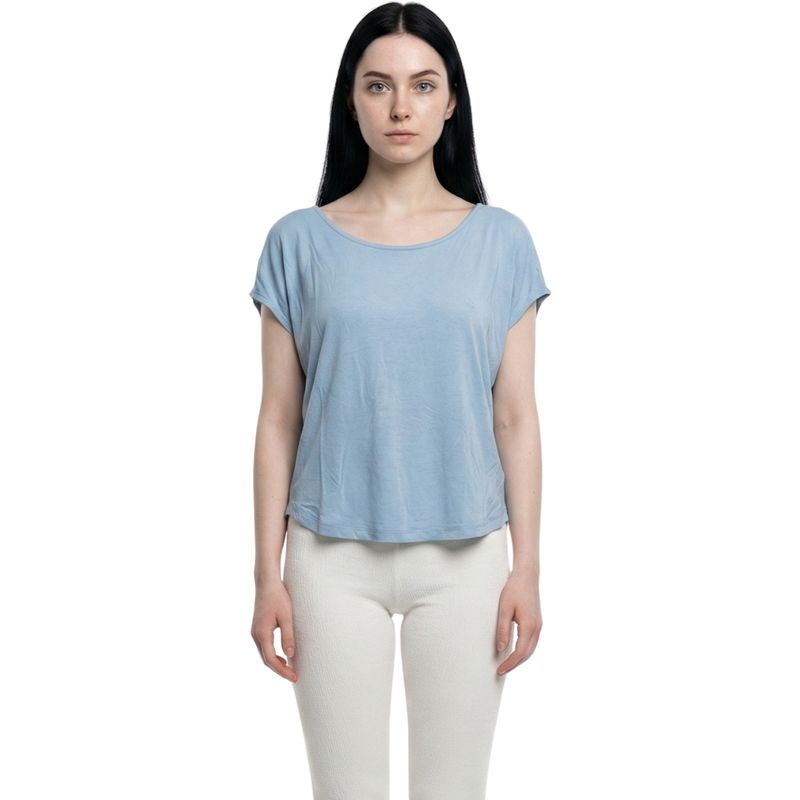 DeportesRopa deportiva mujerRemerasRemera Manga Corta Moño En La Espalda Celeste Mujer Davor