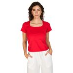 Características Principales: Esta remera presenta un llamativo color rojo que aporta energía y personalidad a tu outfit. Su cuello cuadrado crea una línea moderna y sofisticada, mientras que el escote frontal añade un toque de feminidad sutil que realza la figura de manera elegante.