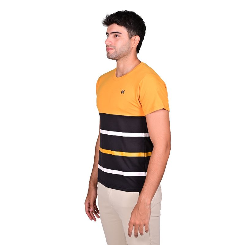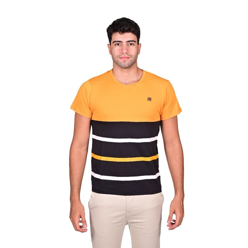 El estampado rayado en color mostaza le da un toque de distinción, permitiendo que esta remera se convierta en un básico de tu vestuario. Su corte cómodo y moderno se adapta bien a cualquier tipo de cuerpo, brindando un look relajado y actual.