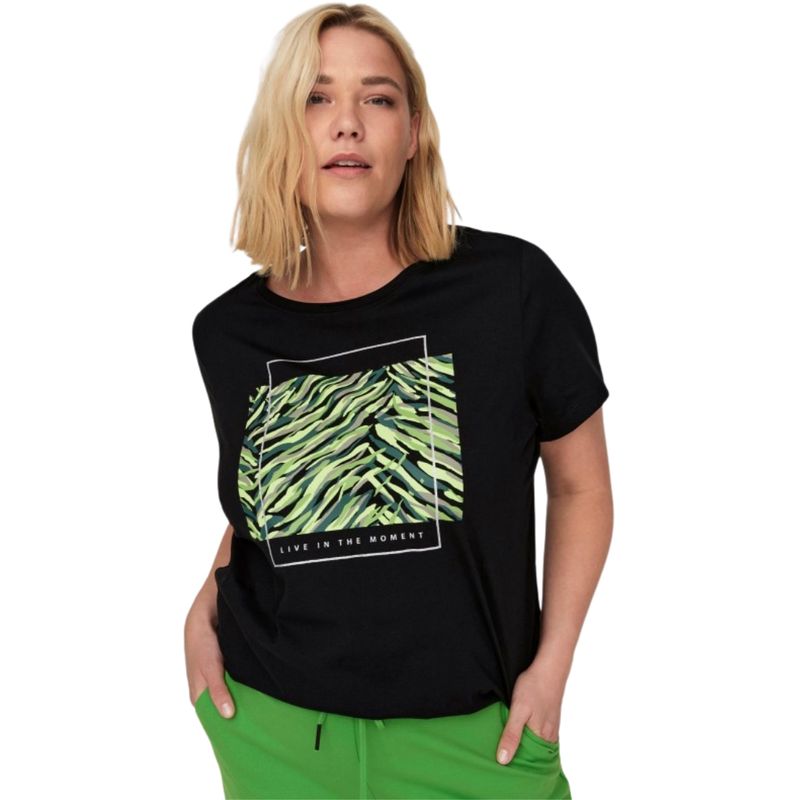 La Remera Manga Corta Negra Mujer Carmakoma es una prenda esencial y versátil que combina comodidad y estilo urbano. Presenta un estampado gráfico en el centro, con un patrón de rayas verdes con detalles amarillos y la frase "live in the moment", que aporta un toque moderno y distintivo a tu look. Su corte recto y cuello redondo hacen que sea cómoda para cualquier ocasión, ideal para combinar con distintas prendas y accesorios.