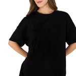 Este modelo cuenta con cuello redondo y hombros caídos que refuerzan su calce oversize, ofreciendo libertad de movimiento y confort durante todo el día. Su corte amplio la hace ideal para combinar con distintos estilos y prendas.
