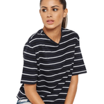 Esta remera de manga corta con rayas para mujer combina frescura y estilo, ideal para crear looks casuales y modernos. Su diseño versátil permite usarla tanto en salidas diarias como en encuentros informales, ofreciendo comodidad y un toque de personalidad al vestuario.