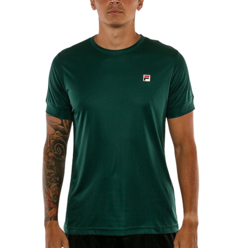 Pequeño logo Fila cuadrado en el pecho, aportando un detalle distintivo y elegante.
