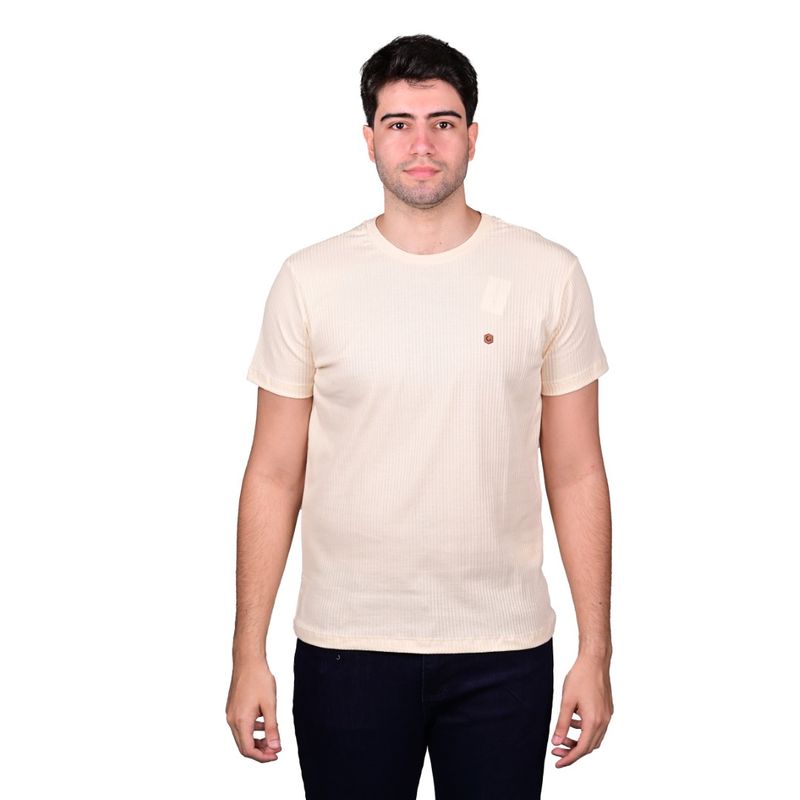 Remera de manga corta para hombre con corte clásico, ideal para un look casual y moderno. Presenta un cuello redondo liso que aporta simplicidad y elegancia. La tela cuenta con una textura acanalada con líneas verticales, creando un efecto visual estilizado y distintivo que realza la prenda sin sobrecargarla.