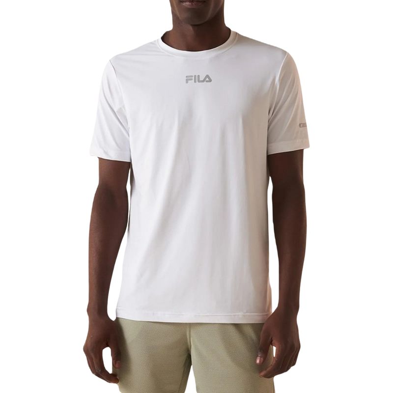 Logo “FILA” en gris en el pecho, aportando un toque distintivo y moderno.