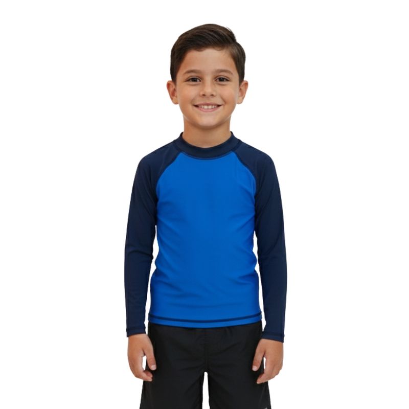 Esta remera presenta un diseño moderno y llamativo, con mangas largas en color negro que contrastan con el cuerpo azul, logrando un look juvenil y dinámico. Su diseño versátil permite combinarla fácilmente con distintas prendas de indumentaria infantil.