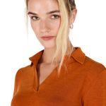Presenta un diseño atemporal con cuello tipo polo que aporta un aire prolijo y sofisticado. Su acabado liso permite combinarla fácilmente con diversas prendas, adaptándose a estilos casuales o más formales según la ocasión.