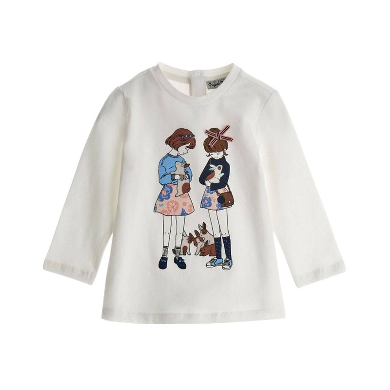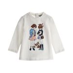 Esta remera de manga larga incluye detalles prácticos como broches en la parte posterior, que facilitan el momento de vestir y desvestir. El corte recto y las mangas largas brindan cobertura adecuada en días frescos, mientras que el estampado frontal aporta un toque lúdico y femenino. El color blanco clásico la convierte en una prenda muy combinable con pantalones, faldas o shorts.