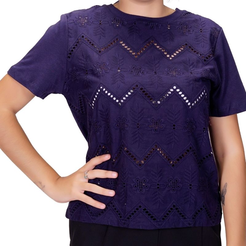 MujerRopa mujerRemeras y blusasRemera Mc Azul Marino De Broderi C/ Detalles Tiare