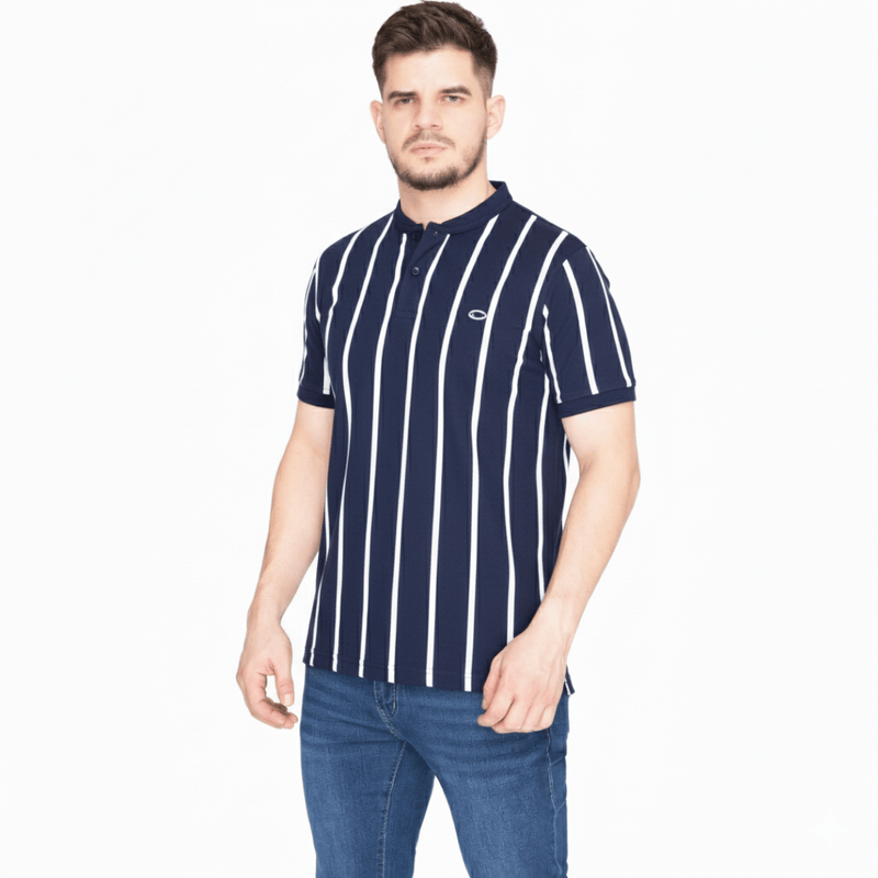 Remera polo de manga corta con un elegante estampado a rayas, ideal para quienes buscan un look casual con estilo. Su corte clásico y cómodo combina versatilidad y distinción, convirtiéndola en una prenda perfecta para distintas ocasiones, desde reuniones informales hasta salidas relajadas.