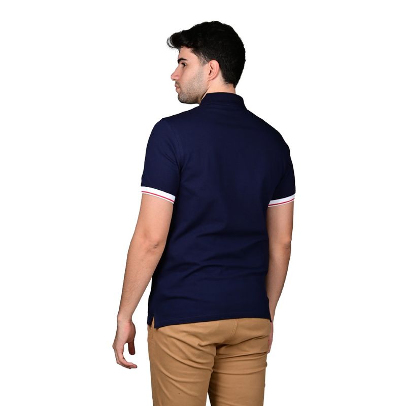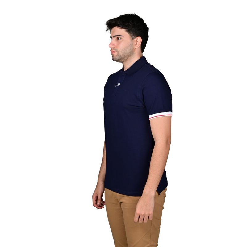 Esta remera polo para hombre ofrece un diseño clásico y elegante, ideal para quienes buscan un look casual o smart-casual. Su color azul marino combina perfectamente con los puños de manga corta con rayas blancas y rojas, agregando un detalle distintivo que realza la estética de la prenda. El cuello abotonado con cierre de dos botones blancos aporta un acabado cuidado y sofisticado, haciendo de esta remera polo una opción versátil para diversas ocasiones.
